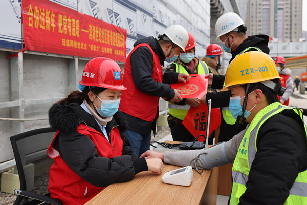 冬日送溫暖,濃濃新春意。近期,濱湖世紀(jì)社區(qū)瓊臨網(wǎng)格黨總支、瓊臨居委會(huì)組織轄區(qū)醫(yī)護(hù)志愿者、社區(qū)書法協(xié)會(huì)志愿者、居民志愿者在中建二局合肥濱湖國(guó)際會(huì)展中心二期項(xiàng)目開展“合你過新年 肥常有溫暖”新春送祝福活動(dòng)。活動(dòng)現(xiàn)場(chǎng)通過發(fā)放新春禮包、進(jìn)行免費(fèi)體檢、贈(zèng)送春聯(lián)、拍攝新年照片等方式,為堅(jiān)守在工地一線的留肥工人提前送上新春祝福,讓留肥務(wù)工人員感受到家的溫暖。據(jù)悉,包河區(qū)濱湖新區(qū)中建二局合肥濱湖國(guó)際會(huì)展中心二期項(xiàng)目為安徽省2號(hào)重點(diǎn)工程,項(xiàng)目建筑面積約13萬平方米,由1個(gè)綜合館、2個(gè)標(biāo)準(zhǔn)館、1個(gè)獨(dú)立地下室組成,其中綜合館屋面跨度144米,是國(guó)內(nèi)最大跨度的會(huì)展工程。
