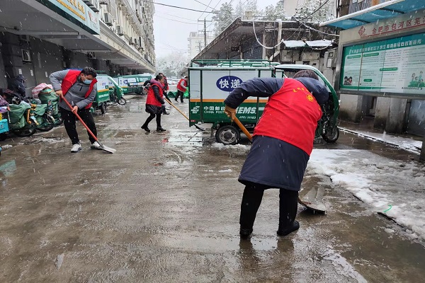 昨晚一場大雪讓整個城市都變得銀裝素裹,2月7日一大早,蕪湖路街道茶亭社區以及轄區黨建聯盟成員單位的黨員志愿者們就開展了鏟雪除冰活動,大家拿著鐵锨、掃帚等工具,對轄區人行道、小區路面等進行積雪的清掃工作。志愿者們不畏嚴寒、不怕辛苦,在風雪中持續奮戰,只為通暢道路、方便居民出行。為轄區道路暢通、群眾安全出行提供了有力保障。