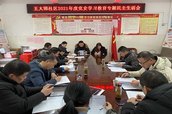 2月10日上午,同安街道王大郢社區召開了2021年度黨史學習教育專題民主生活會,同安街道黨工委委員、武裝部部長夏冬及城管中隊副中隊長楊帥兩位同志,與會指導。