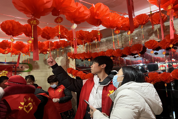 立春時節,乍暖還寒,但志愿者們都早早來到活動現場,搬桌子、掛燈籠、掛橫幅,個個忙的不亦樂乎,不一會兒便張燈結彩,將樓棟裝扮一新,增添了一抹濃濃的節日氛圍。歡樂祥和的節日氛圍吸引了眾多過往居民,他們紛紛加入其中,熱熱鬧鬧地搓湯圓、猜燈謎、扎花燈,歡度元宵佳節。“我是第一次做元宵,而且猜燈謎也學到很多知識,這次實踐活動真的很有意義,”10歲的王佳開心地講到。