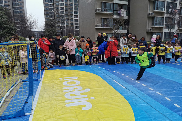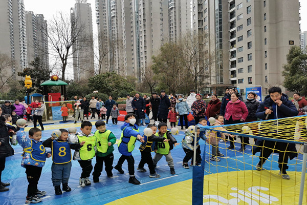 前期,融蔭居委會在各樓棟群里以接龍報名的形式積極招募家庭。總共報名的50組家庭分成黃隊、綠隊和藍隊3個小組。活動開始孩子們分組扔手球進行熱身,先排隊輪流個人扔球,然后同組10名隊員一起扔球,發現每個人扔出去的球不能把球門打倒,但是一個組同時扔球力量可以砸倒一個球門。通過此項活動讓孩子們快速的融入集體活動來,體會每個人的力量是有限的,集體的力量是巨大的,只有融入集體才能發揮應有能量。接著家長和孩子們一起學習冬奧小知識,進行搶答積分對抗賽。知識搶答過程重點鼓勵孩子們積極發言,著重培養孩子們的表達能力,樹立自信,建立競爭意識。最后在親子傳球趣味游戲中釋放孩子們運動潛能,提高孩子們的專注力、思維力,增進親子關系。