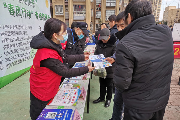 2月20日上午,包河區“春風行動”招聘會在包河區煙墩街道竹園小區廣場順利舉行。本次招聘活動由包河區人力資源和社會保障局、包河區煙墩街道辦事處主辦,包河區公共就業和人才服務中心、安徽合峰人才服務有限公司、煙墩街道竹園社區承辦。