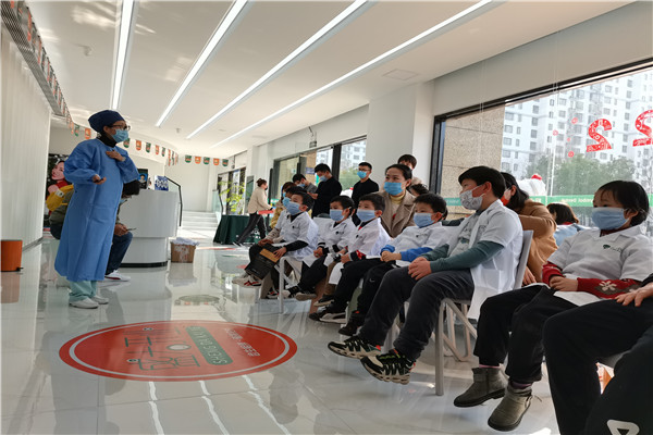 活動當天,小朋友們早早來到口腔醫院,在工作人員的幫助下統統換上了純白的“小牙醫”工作服,一個個小牙醫“摩拳擦掌”準備在此次活動中大顯身手。活動開始,牙科醫生給大家科普了牙齒的構造、分類和功能等知識,并現場教大家怎樣正確刷牙。