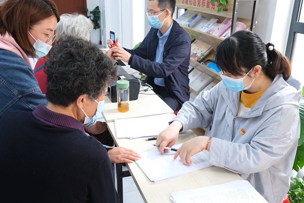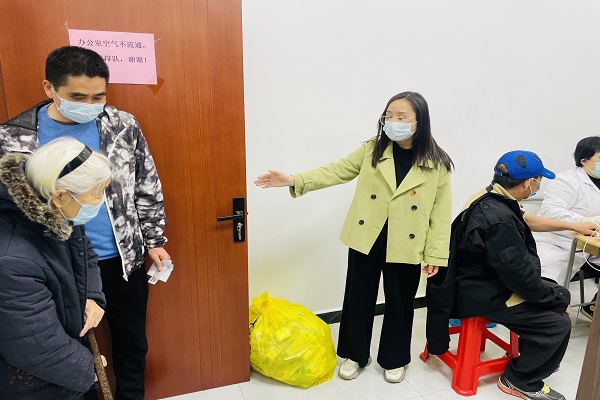 疫苗接種當(dāng)日,社區(qū)黨員干部和工作人員提前調(diào)試好儀器設(shè)備,確保接種過程順利進行。上午八點,前來接種疫苗的居民在社區(qū)黨群服務(wù)中心門前排起了長隊,黨員志愿者站在隊伍前端,為每一位居民測溫,提醒大家進掃安康碼、有序排隊等待工作人員進行信息核對?!罢埬屑?xì)閱讀這份《新冠疫苗接種知情同意書》,沒有問題的話,請您在下方簽下姓名及聯(lián)系方式……”,“請收好您的身份證,手持注射單前往接種室等待接種……”,現(xiàn)場黨員干部和工作人員有條不紊的為居民們核實并錄入信息?!罢埬膛宕骱每谡?,間隔一米排隊,從這里排隊進入接種室,有序接種疫苗……”黨員志愿者耐心地引導(dǎo)居民有序排隊等待疫苗接種,向大家說明疫苗接種后的注意事項,并提醒大家在留觀區(qū)留觀半小時后再離開。