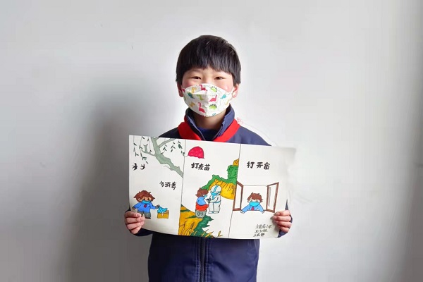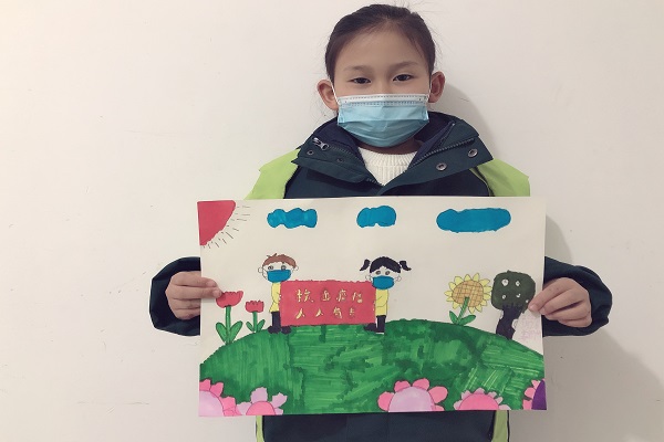金葡萄小學(xué)一(七)班姜雨竹:疫情讓我體驗了一種特殊的生活方式:出門佩戴口罩,減少和小伙伴的聚集,還有積極接種疫苗,希望每一個人都認(rèn)真做好防護,保護自己和大家!