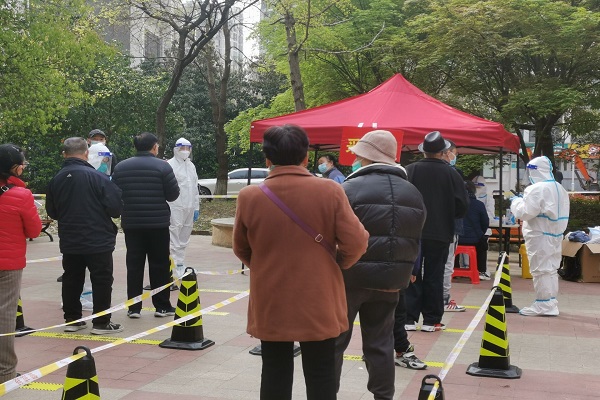 在核酸檢測演練的現(xiàn)場,有一群“紅馬甲”主動上前詢問居民是否需要幫助,她們是望湖社區(qū)的巾幗志愿者。在活動現(xiàn)場她們負(fù)責(zé)現(xiàn)場維持秩序,引導(dǎo)前來進(jìn)行核酸檢測的居民測溫、掃碼、登記,同時提醒被檢測人員“間隔一米、有序排隊(duì)”……遇到老年人不會操作智能手機(jī),她們也會熱情地前去幫忙指導(dǎo),詳細(xì)講解如何查看檢測報告等。碰到帶身份證的老年人,她們會詳細(xì)登記信息,細(xì)心地幫老人提前把電話號碼記錄下來,幫助她們按照程序進(jìn)行登記。巾幗志愿者的傾情助力,讓核酸檢測工作整齊有序、規(guī)范高效,居民們對她們耐心細(xì)致的服務(wù)也紛紛點(diǎn)贊。
