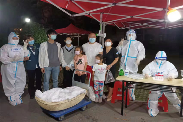 兩輪核酸檢測時間均由早晨持續到深夜,中海濱湖公館熱心居民李玲一家為該小區五個點位的工作人員送上暖心肉包,“為了我們的安全,你們辛苦了。”李玲對現場的工作人員表示感謝,其丈夫施家根先生主動參與志愿第二輪核酸檢測物資的分配,同時有過醫護經驗的信達公園里三位業主也志愿參加核酸采樣工作,共同共建共守社區疫情防控戰線。