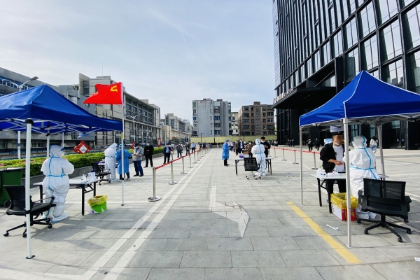 在4月22日、24日以及26日的包河區三輪核酸檢測中,商圈內富廣大廈和金保中心兩個點位、四個登記臺全面鋪開、高效運轉,排隊、掃碼、摘口罩、仰頭、張嘴、檢測......全力加速度,保障樓宇240家企業的員工在最短時間、最高效率中完成核酸檢測過程。無論是忙碌的上班族,還是路過外賣小哥,都不約而同對檢測工作給出了“快”的評價。金保中心的一位企業員工說道:“從我排隊掃碼登記到檢測完成只用了不到5分鐘,特別快,一點也不耽誤接下來我的工作?!?/span>