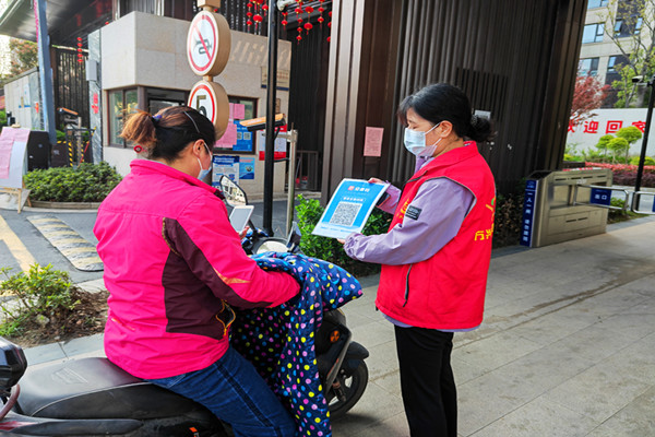 組建抗疫隊伍,揚起紅色黨旗。瑞安黨支部把黨建引領小區(qū)治理與疫情防控結合起來,充分發(fā)揮黨支部戰(zhàn)斗堡壘作用和黨員先鋒模范作用,引領小區(qū)“三在”黨員共同抗疫。瑞安黨支部黨員志愿者、市派下沉干部、瑞安抗疫志愿服務隊共同參與到小區(qū)防疫知識宣傳、“兩碼”核驗、測溫等疫情防控中,有效緩解了社區(qū)防疫工作中人手緊缺問題,切實為社區(qū)聯(lián)防聯(lián)控、群防群治助力,與社區(qū)共同鑄就堅實的疫情“防火墻”。