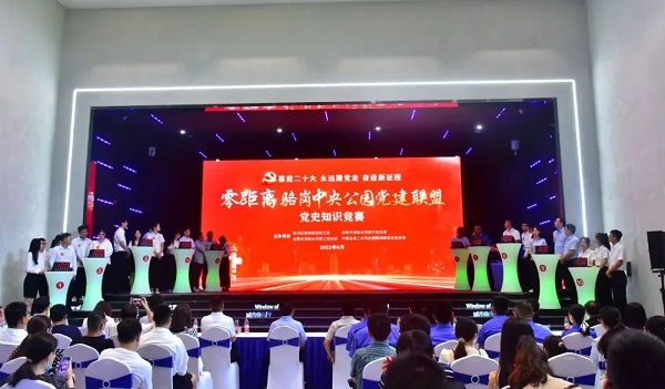 為進一步推動黨史學習教育常態化,鞏固拓展黨史學習教育成果,6月26日下午,在駱崗中央公園智慧中心,“零距離”駱崗中央公園黨建聯盟單位聯合舉辦“喜迎二十大、永遠跟黨走、奮進新征程”黨史知識競賽,旨在進一步加強駱崗中央公園黨建聯盟單位的共建聯系,實現服務中央公園建設的“零距離”,形成共謀發展的強大“凝聚力”。