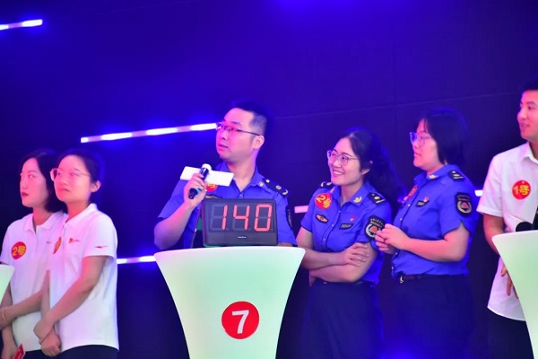 本次比賽分為必答題、搶答題、風險答題等多個版塊,并在競賽現場穿插了“答題有禮”互動環節,引得現場觀眾的陣陣歡呼!經過一個下午的緊張比賽,最終市濱投二支部代表隊拔得頭籌,斬獲一等獎,駱崗街道代表隊、市濱投六支部代表隊獲得二等獎,駱崗公園市政代表隊、區城管局代表隊、省體院代表隊獲得三等獎。省市場監管局代表隊、駱崗公園房建代表隊、駱崗公園景觀代表隊、駱崗公園停車場代表隊獲得優秀獎。與會領導為參賽隊員頒獎并合影留念。