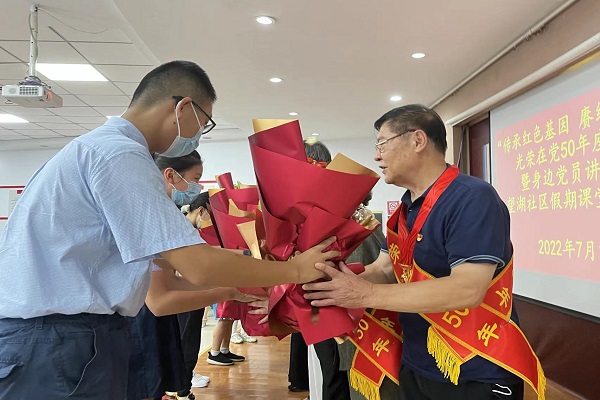 “光榮在黨50年,是一份來(lái)之不易的榮譽(yù),更是一份重于千斤的責(zé)任,衷心感謝社區(qū)為我們舉行這個(gè)隆重的儀式,我們?nèi)w老黨員將不忘初心,以‘光榮在黨每一天’的責(zé)任使命和‘久久為功善作善成’的定力恒心,一如既往地支持社區(qū)的工作,貢獻(xiàn)自己的力量……”