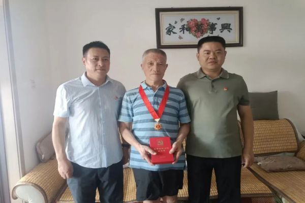 “老人家,今天是七一建黨節,給您送上‘光榮在黨50年’紀念章,感謝您長期以來所做出的貢獻。”在黨員葛圣傳家中,鎮黨委副書記、鎮長劉文龍將沉甸甸的紀念章送到其手中。“光榮在黨50年”紀念章,既映照著老黨員滾燙的初心,又體現了黨組織對老同志的關心和關愛。臨行時,劉文龍叮囑社區要多關心老黨員的身體和生活,幫助他們解決生活中存在的困難和問題。