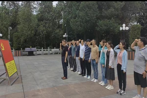 在莊嚴肅穆的革命烈士紀念塔前,黨支部書記顧懷銀帶領大家重溫入黨誓詞,響亮的宣誓聲交織出一首動聽的旋律,表達了新時代的黨員們不忘初心、牢記使命的決心。