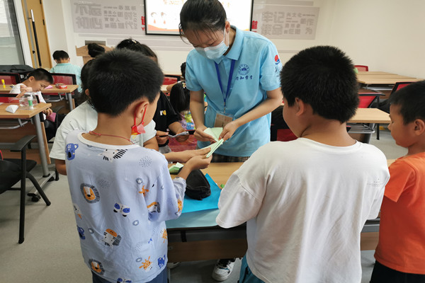 在手工課小老師的耐心地引導下,小朋友撕撕、剪剪、揉揉、搓搓。通過這些動作,培養孩子們的手眼協調能力,鍛煉孩子們的精細動作。通過觀看小老師制作手工,可以培養孩子們制作的興趣。