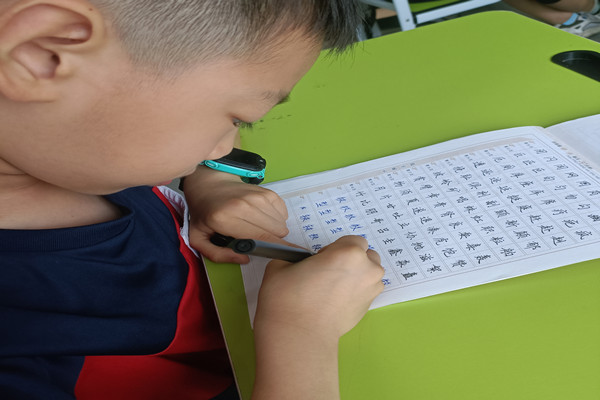 在硬筆書法的課堂上,小老師幫助小學員們糾正寫字坐姿,規范握筆姿勢,為小學員們示范書寫講解筆順,在老師的細心講解和引導下,小學員在觀察、比較、臨摹的基礎上,學會書寫一些基本筆畫,了解掌握鋼筆字的書寫要領,進一步培養小學員們良好的書寫習慣。
