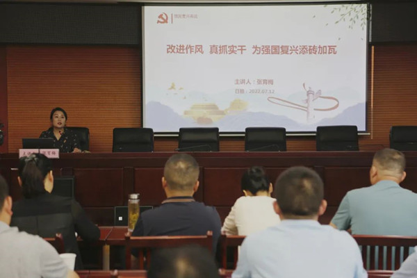 為增強(qiáng)煙墩街道各級黨組織的創(chuàng)新力、凝聚力和戰(zhàn)斗力,不忘初心、牢記使命,滿懷信心迎接黨的二十大勝利召開,7月12日下午,煙墩街道人大工委主任、黨工委委員、紀(jì)工委書記、監(jiān)察室主任張育梅以“改進(jìn)作風(fēng),真抓實(shí)干,為強(qiáng)國復(fù)興添磚加瓦”為題,開展專題黨課學(xué)習(xí)。街道各社區(qū)、村(工作站)第一書記、書記、主任,街道各部門正副職,紀(jì)工委全體人員,欣誠公司主要負(fù)責(zé)人參加此次黨課學(xué)習(xí)。
