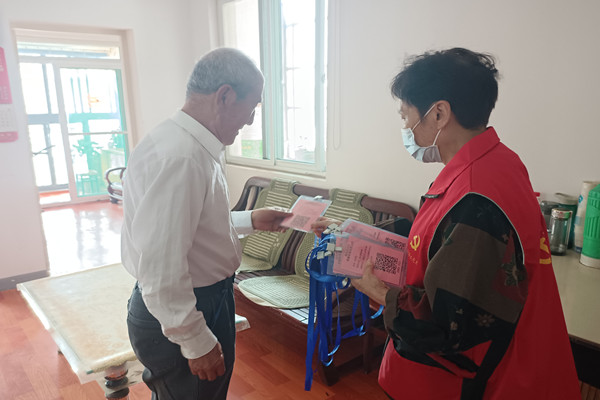 入戶探訪,了解老人生活情況。瑞園暖陽志愿服務隊通過電話問詢、實地走訪收集到轄區部分高齡、獨居、行動不便等特殊老人基本信息,不定期開展入戶探訪活動,了解、收集老人的身體狀況、生活情況、家里衛生情況、親屬看望情況、問題與需求等各個方面的信息,為老人建立服務檔案,方便進行持續跟蹤服務。在全員核酸檢測時,瑞園黨委篩選出了一批獨居老人的信息,為老年人定制便攜的核酸碼。收到定制的核酸碼,年過八旬的韋爺爺感到十分高興,連連稱贊:“以前核酸檢測又要帶身份證又要背手機號碼,給我們老年人帶來許多不便?,F在有了核酸碼,今后核酸檢測再也不用麻煩別人了,真是為我們老年人解決了一大難題”。