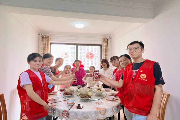 二是“萬家燈火,時代情深”紅色走訪。中秋佳節(jié),月圓家圓事圓。時代城黨支部組織雷鋒街區(qū)商戶為轄區(qū)獨居老人提供團(tuán)圓飯菜,黨支部邀請轄區(qū)黨員志愿者及少年兒童上門陪同轄區(qū)獨居老人共同度過團(tuán)圓佳節(jié)。孩子們?yōu)楠毦娱L者送去美麗的鮮花,志愿者們親手為獨居老人張羅一桌飯菜,關(guān)心老人們居家生活狀況。在中秋這個特殊的節(jié)日里,陪伴獨居老人吃一頓飯,送上節(jié)日最真誠的祝福,將志愿服務(wù)與尊老敬老真正做到實處。奶奶難掩激動地說:“遠(yuǎn)親不如近鄰,來到時代城這個大家庭,真的給我?guī)砹颂嗟臏嘏c感動,你們讓我感受到家人般的貼心與溫馨。”