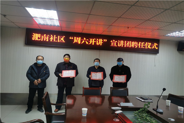 “2013年底,淝南家園完成回遷安置,為了滿足居民文化生活需要,進(jìn)一步推進(jìn)社區(qū)基礎(chǔ)設(shè)施的完善,社區(qū)在淝南家園北區(qū)建造文化休閑長廊。”淝南社區(qū)黨委書記、居委會主任彭克長介紹說,利用這個全新的陣地,社區(qū)針對不同群體分眾化、精準(zhǔn)化開展“睦鄰和諧”、“相伴佳節(jié)”、“文娛競賽”、“健康義診”等志愿服務(wù)活動。為了做好民生服務(wù)大文章,2021年9月,淝南社區(qū)正式組建“周六開講”宣講團(tuán),社區(qū)黨委根據(jù)“社區(qū)海選、優(yōu)中擇優(yōu)”原則,通過才藝展示、居民推薦等流程,經(jīng)過層層上報、組織篩選,共選出盛祥安、彭立獎、盛澤錢等6名政治素質(zhì)高、思想品質(zhì)好、群眾威望高的草根宣講團(tuán)成員,讓“周六開講”宣講團(tuán)聲音飛入千家萬戶。