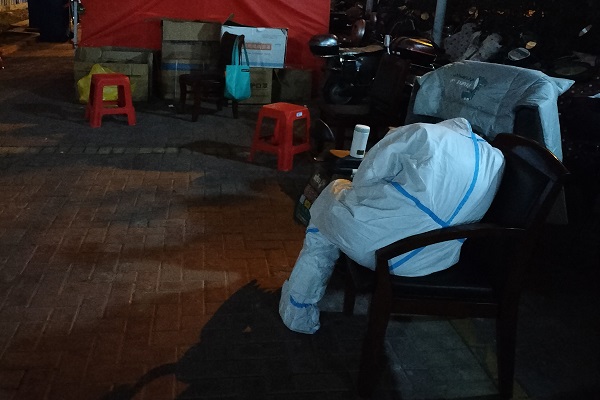 來到葛大店社區以后,“小管家”們第一時間進入到社區疫情防控陣地中,從早上7點到晚上8點忙碌在核酸采集點上。怕大喇叭播放的聲音吵到在家上網課的學生,他們平時更多是用自己的嗓子在做核酸的隊伍旁邊來回喊話,不出兩天嗓子就啞了,即便這樣,也沒有一個人抱怨退縮。