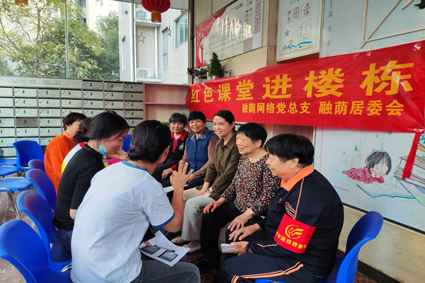濱湖世紀社區(qū)融蔭網(wǎng)格黨總支通過樓棟“微黨課”等“接地氣”的形式,創(chuàng)新黨課講演形式,將黨課從會議室搬到小區(qū)樓棟,確保主題教育全覆蓋,讓主題教育氛圍“深入人心”,激發(fā)黨員初心動力。